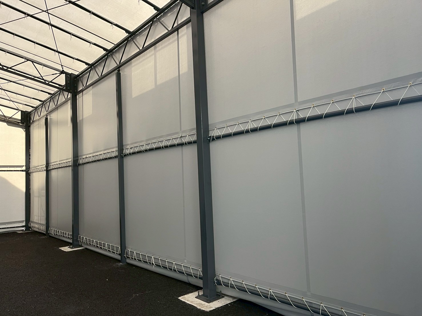 2026.04.23 テント生地で作業スペースを快適に!芯材カーテンと衝立壁を取り付けました! |福岡県 建設の場所 福岡県 種別 芯材カーテン・衝立壁 使用したテント生地 ウルトラマックス グレー 担当スタッフからのコメント 今回は既設のテント倉庫に芯材カーテンと衝立壁を取り付けました!テント倉庫の出入り口を囲うことでテント倉庫内に外からのゴミや虫などの侵入を防ぐことができます。庇・雨樋では防ぎきれない激しい雨にも強く、快適に使用することが可能となります。弊社ではテント生地を使って様々なものをご提供することができます。お気軽にお問い合わせください!