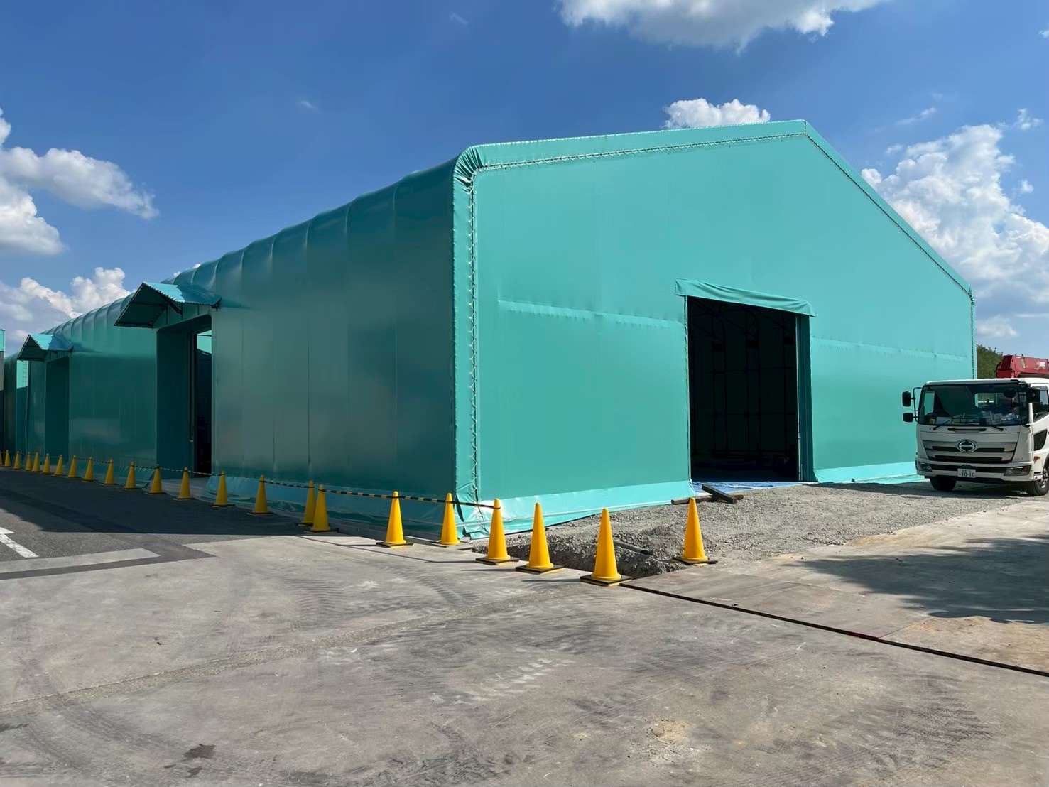 2025.10.16 側面開口付きの大型テント倉庫!テント倉庫を建築しました! |福岡県 建設の場所 福岡県 種別 テント倉庫 サイズ W20×L30×H5 使用したテント生地 ウルトラマックス グリーン オプション 側面ハンガードア 庇 LED ベンチレーター 担当スタッフからのコメント 今回は福岡県でテント倉庫を建築しました!生地はグリーンを使用しているため、光を通しにくくなっています。そのため中で作業ができるようにするためLEDを取り付けております。側面の入口が複数あり、換気設備もあるため快適なテント倉庫が完成いたしました。九州だけではなく、関西、関東と全国対応しております。テント倉庫についてお気軽にお問い合わせください。
