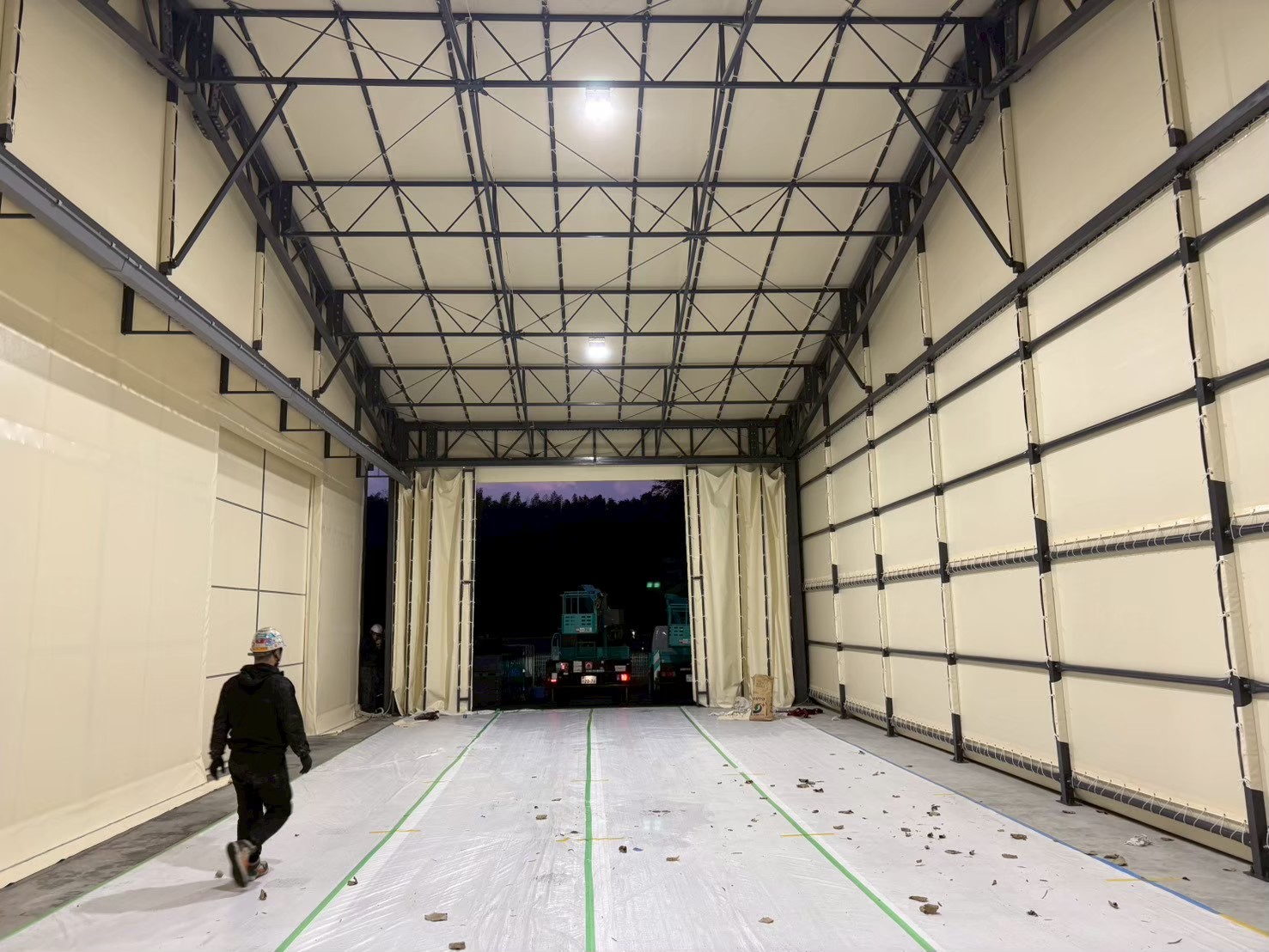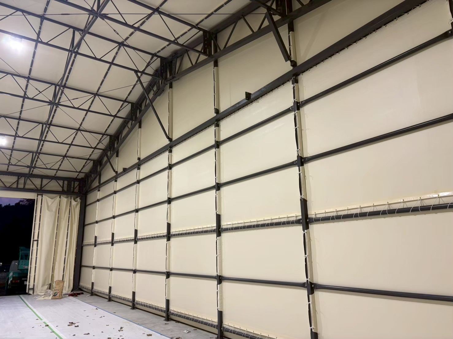 2026.04.09 既存の通路テントを更にレベルアップ!間仕切・カーテンを取り付けました! |福岡県 建設の場所 福岡県 種別 間仕切・カーテン 使用したテント生地 ウルトラマックス アイボリー 担当スタッフからのコメント 今回は福岡県で既設の通路テントに間仕切・カーテンを取り付けました。風に乗ってくるホコリや雨を防ぐことが可能で隙間も生地を張り塞ぎました。テント倉庫や間仕切・カーテンに関しては弊社にお問い合わせください!