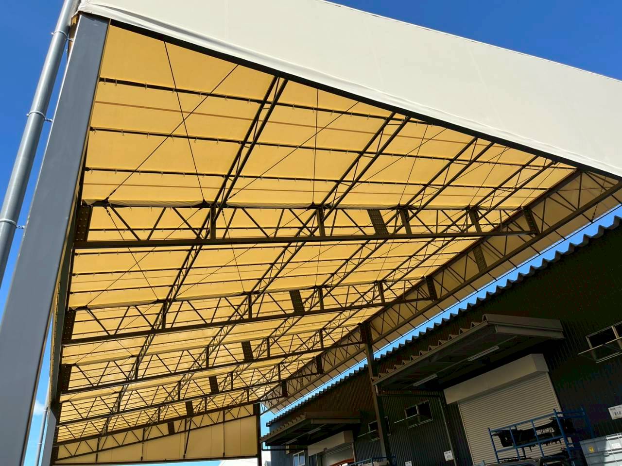 2025.10.09 荷捌き場として需要が急上昇中!上屋テントを建築しました! |佐賀県 建設の場所 佐賀県 種別 上屋テント サイズ W13×L30 使用したテント生地 ウルトラマックス アイボリー オプション 庇 雨どい 担当スタッフからのコメント 今回は佐賀県で上屋テントを建築しました。利用用途としては主に荷捌き場が多く、倉庫業をされていたり、運送会社の方に需要が高まっています。側面には雨樋があるため雨が建物間に落ちる心配もほとんどありません。上屋テント以外にもテント倉庫も建築しておりますのでお気軽にお問い合わせください。